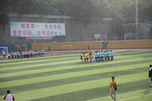 阳光一寸寸地涨,云翳斑驳的窗台上几只麻雀跌过,留下深深浅浅的印记。时间一分一秒地流逝,内心的迫切感愈来愈强烈。终于等到下课铃声的敲响,同学们踏上征途,来到运动场地,熙攘着黄校服和红校服,只听裁判哨音刚落,对面高个子便表现出的气概,向我方踢去足球。我方红球袜成员顺势接住,在众人的争抢中,成功杀出一条路来。“不错”我打心眼里为红球袜成员喝彩。“进,进……唉?”15班同学有力地呼喊着。“唉,不愧为专业球员!”还不等15班同学叹息完,对面7班主力军高个子,便以迅雷之势成功接下足球,一个转身。“啧”顷刻间,足球横穿全场,直奔我方球网。我方守门员赶紧调整姿势,准备拦下这颗失控的球。只见他迅速上跳,伸出手,往上扑……又是个震撼人心的时刻,最终比赛的胜利花落谁家呢?是扬言进两位数球的7班,还是不甘示弱的15班呢?“咚”球顺利进网。此刻,全场响起了惊雷般的掌声和呼喊声。高个子得意地举手示意。最终,7班以1:0险胜15班!比赛结束后,双方握手致意,互相称赞道:“踢得不错。”