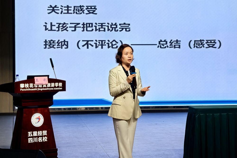 工作室参观了攀枝花市经贸旅游学校的校园文化建设和心理中心。结合中等职业教育和综合实验高中的特点,积极为其家长学校的建设建言献策。工作室领衔人王利老师、工作室成员王海云老师和特邀讲师武英桂老师围绕亲子沟通策略的应用进行了同课异构。分别以《“慧”做家长——亲子沟通策略分享》《家庭教育中的沟通技巧》和《爱的语言和谐的家》3个主题,连续3天为学校5个专业部的500余名家长开展了5场专题讲座。