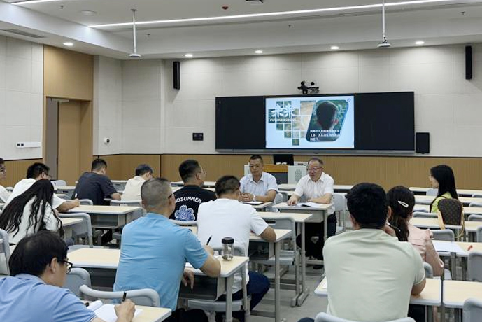 工作室领衔人税荣昌为高2025届高三冲刺备考做指导。他结合近年高考命题趋势,从“分层教学策略”“实验探究能力培养”“跨学科融合命题应对”三个方面提出建议,并分享了大数据分析在个性化复习中的应用经验。税荣昌强调:“备考需注重基础与能力并重,引导学生从‘解题’向‘解决问题’转变。”与会教师纷纷表示,此次指导为优化复习计划、提升备考效率指明了方向。